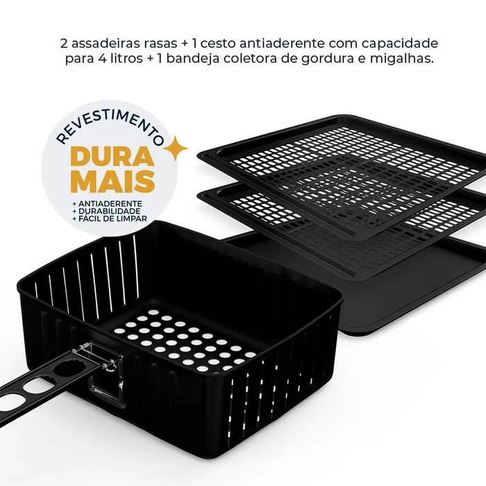 4 em 1: Frita sem óleo, assa, reaquece e desidrata.